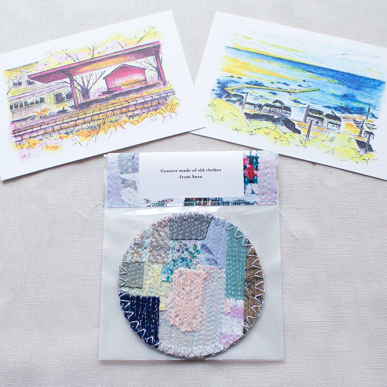 【for Suzu】古布のコースター+ドローイングポストカード 008
