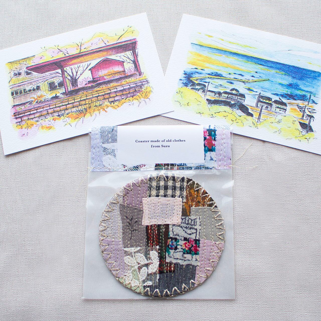 【for Suzu】古布のコースター+ドローイングポストカード 015